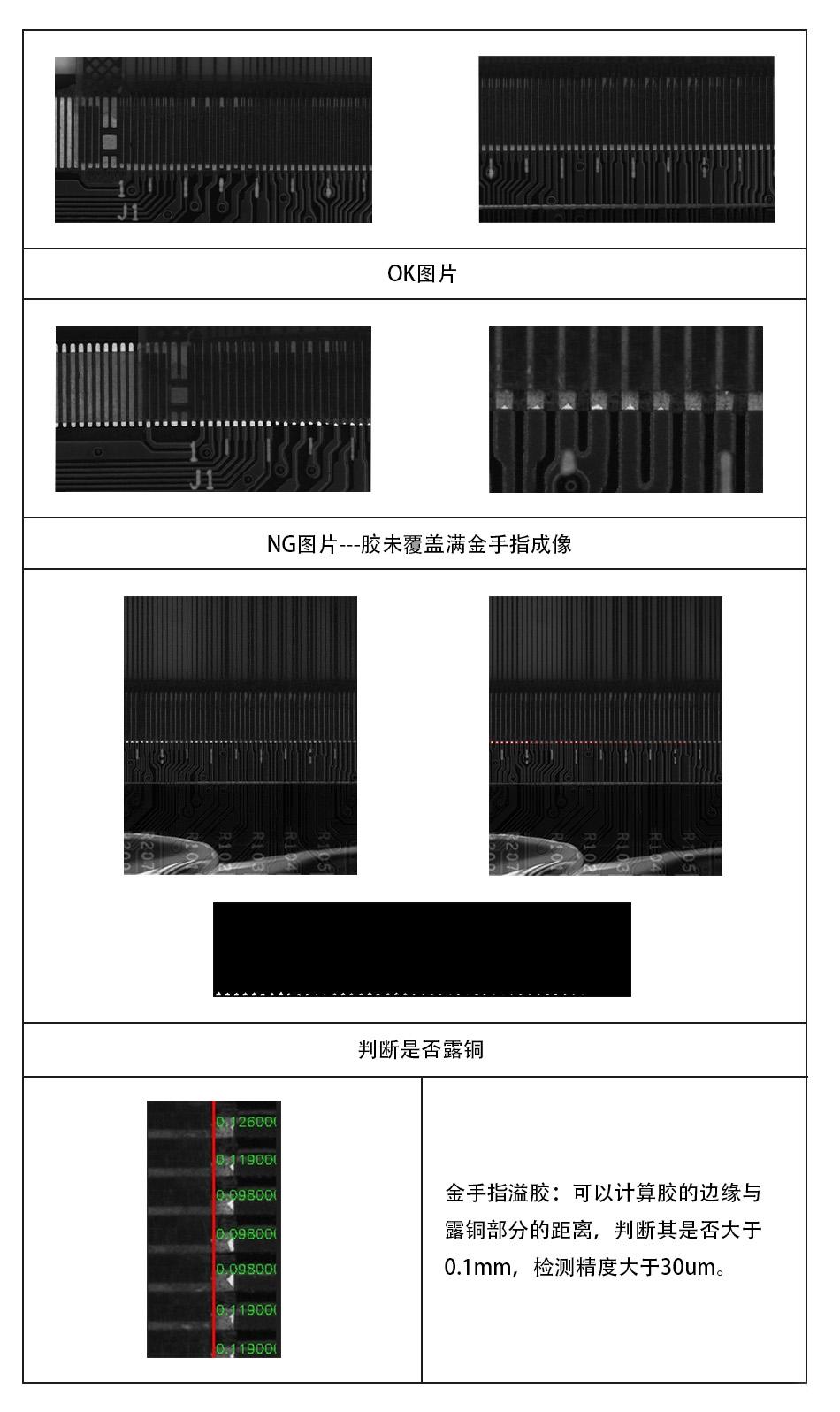 FPC bonding can achieve efficient and stable circuit connections. ACF adhesive is used for bonding TAB or COG of LCD panels, which requires high technical content and accuracy. After PCB bonding, ACF gold finger overflow defects often occur. This machine mainly detects ACF gold finger overflow defects to improve the production line yield.
