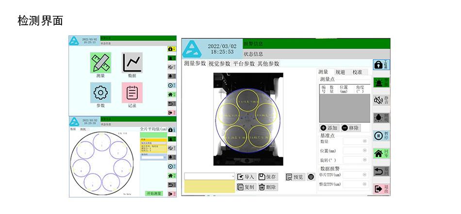 This device measures the thickness of wafers and display panels after partial processes such as wafer slicing, grinding, thinning, and slicing. Can synchronously test the TTVBOWWRAP/SORI and other parameter errors of the material itself.